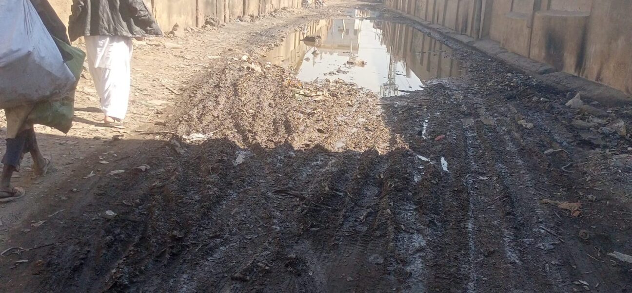(اُردو ایکسپریس) کراچی پاکستان کی سب سے بڑی سکریپ مارکیٹ "شیر شاہ کباڑی بازار” کا داخلی راستہ سیوریج کے پانی.